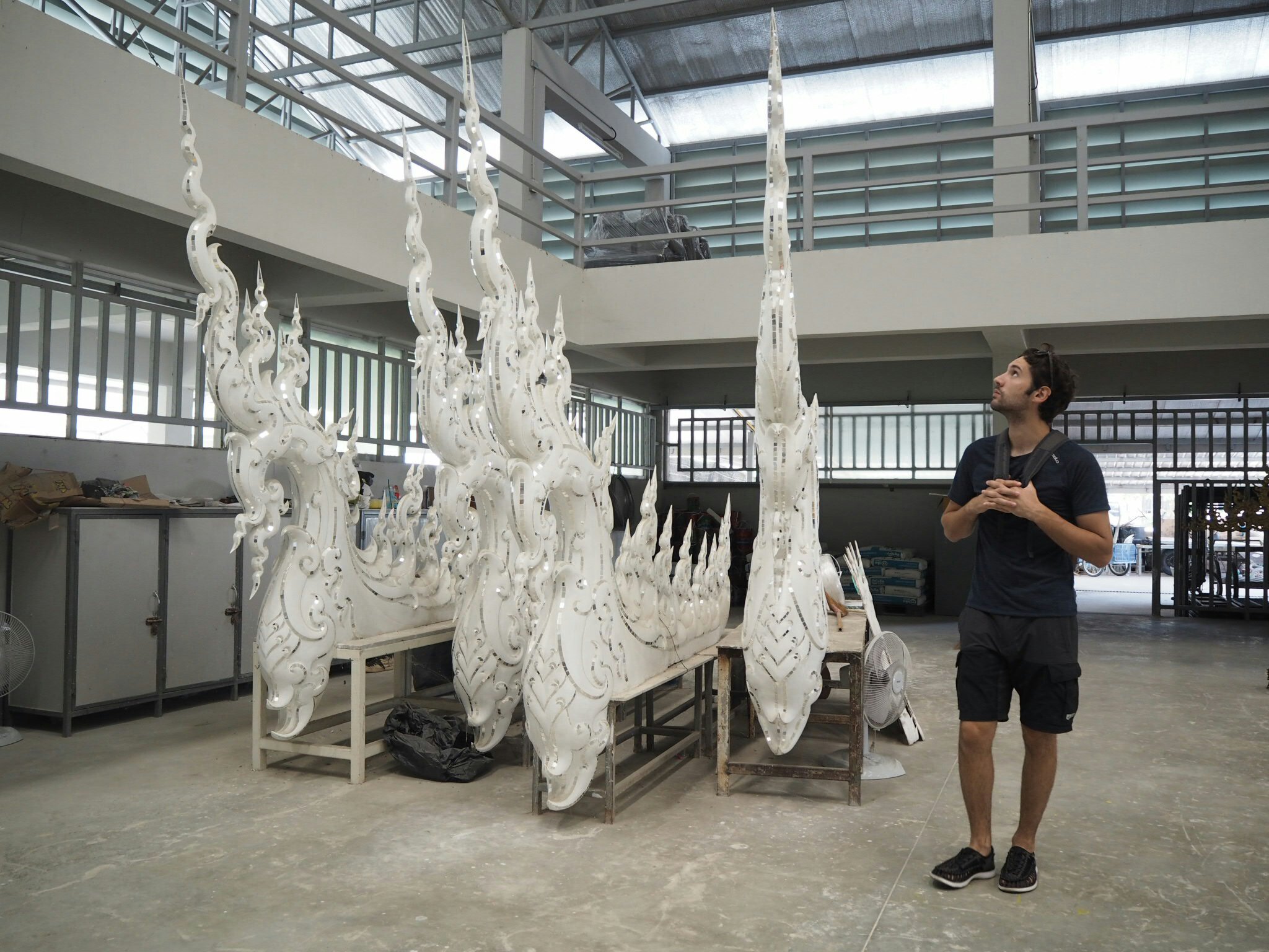 Chiang Rai à trois heures de bus de Chiang Mai et à seulement deux heures de la frontière qui nous séparent du Laos. Chiang Rai, c’était seulement au début une halte avant de rejoindre ton pays voisin. Finalement, nous avons aimé y découvrir tes petits marchés, ton temple bleu, ton temple blanc et sa décoration plus que décalée. En ayant rien que pour nous la visite de tes ateliers.
