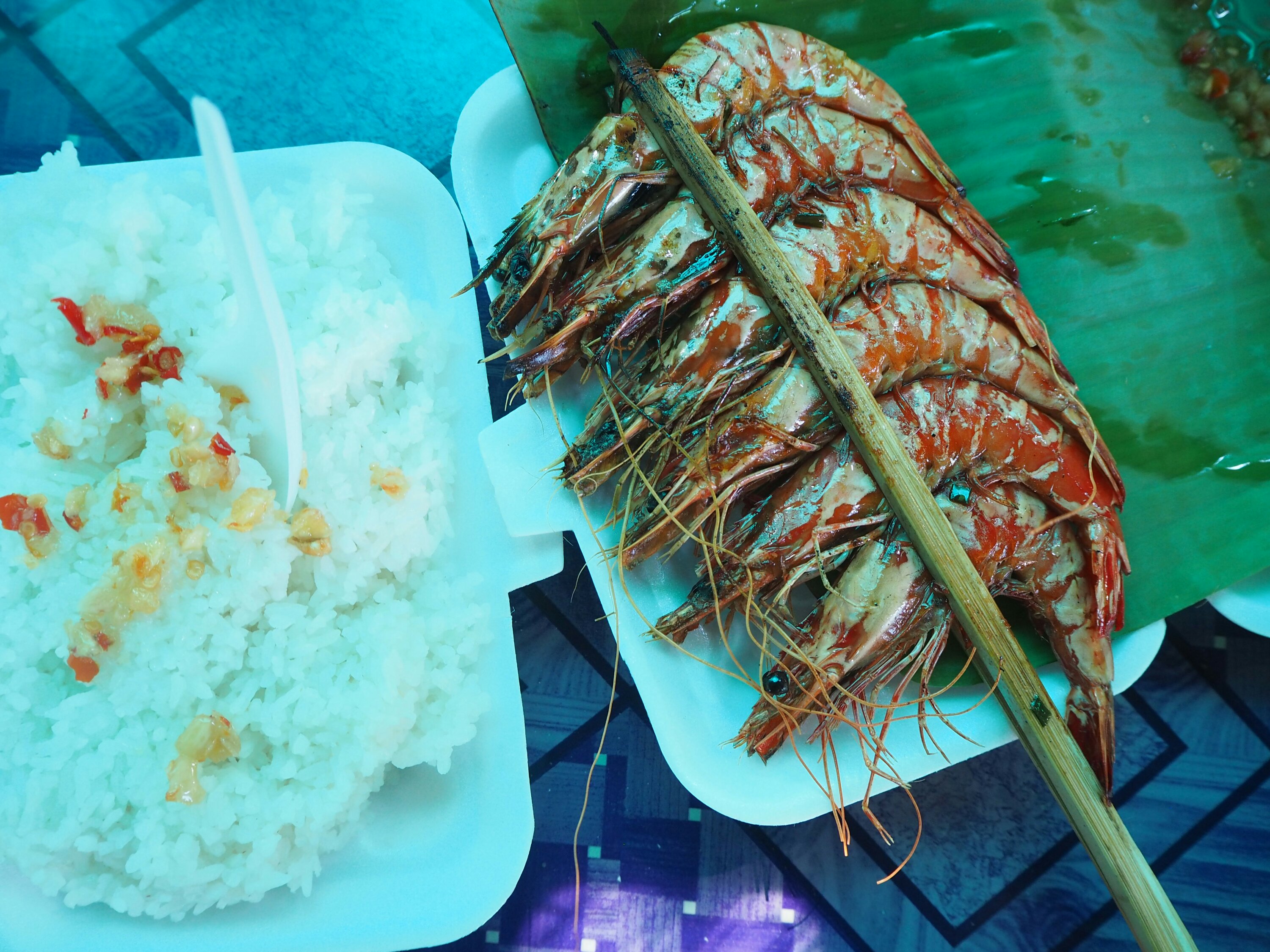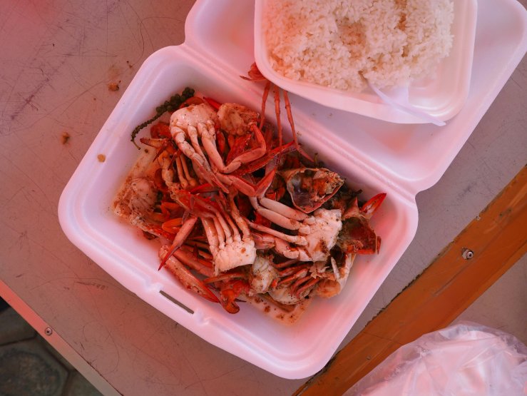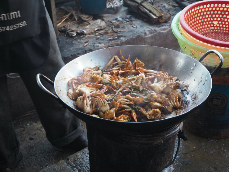 Pour Aurélien se sera dégustation de crabes au poivre de Kampot et crevettes. Pour ma part ce sera riz et gaufres à la coco. C’est bien aussi. !