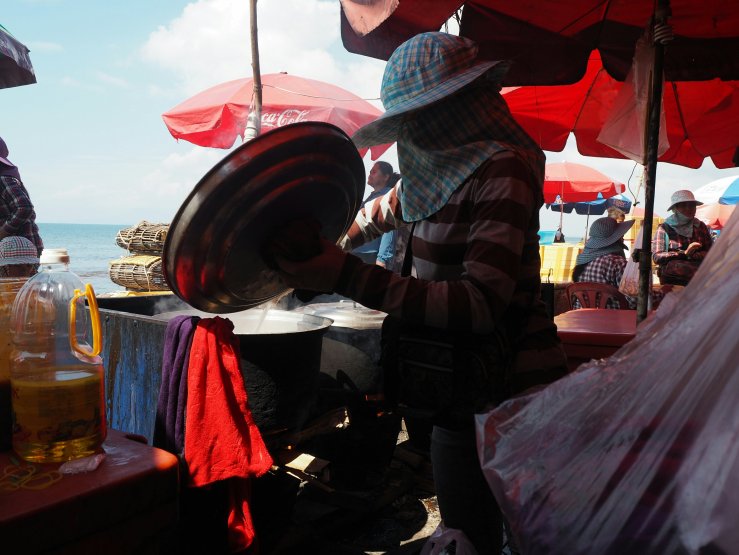 Après la visite des plantations de poivre. Il est maintenant temps pour nous de rejoindre le marché de Kep. L’endroit idéal pour les amateurs de fruits de mer. Ce qui n’est malheureusement pas mon cas, le comble pour une Bretonne.
